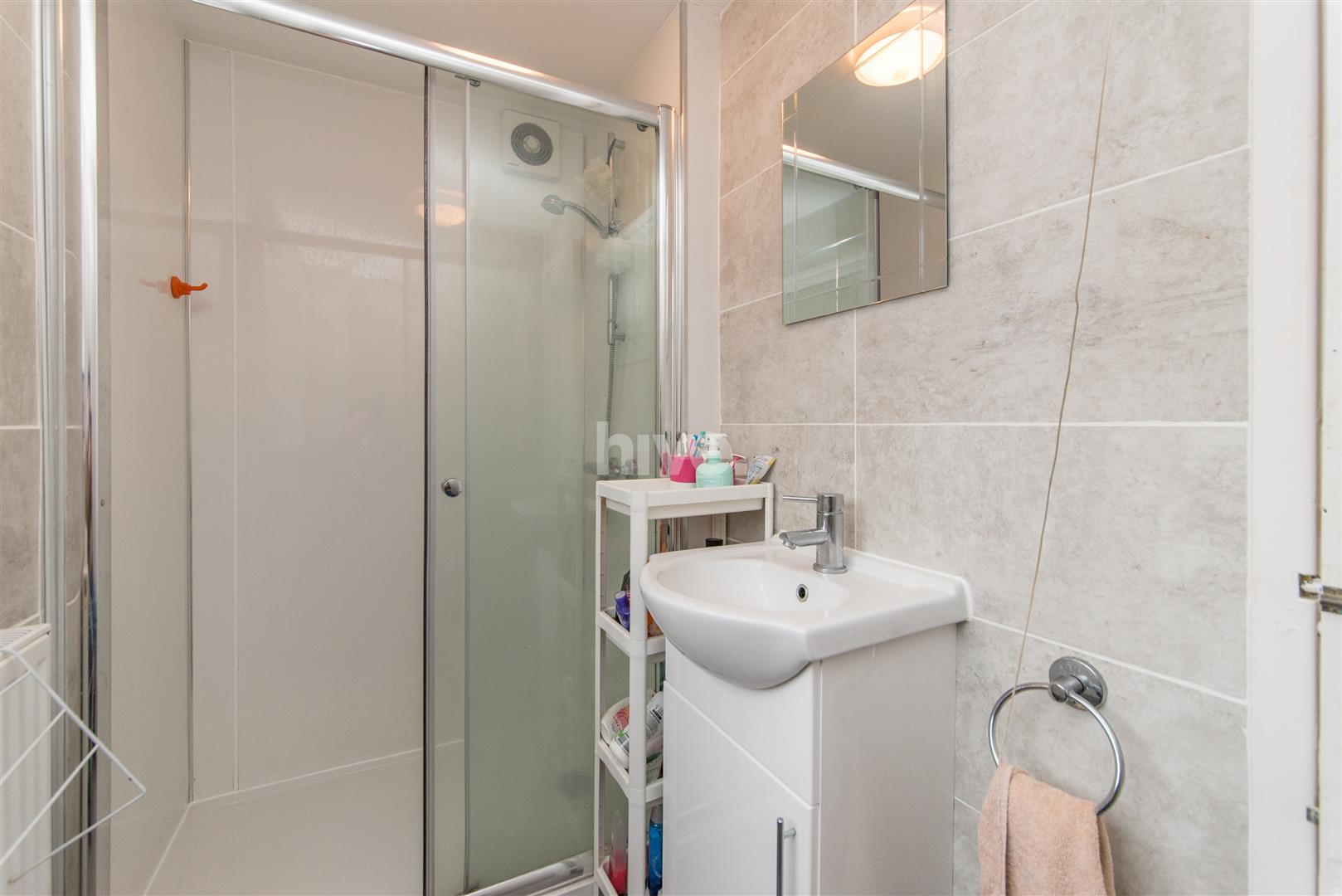 - Tiled bathroom with walk in shower