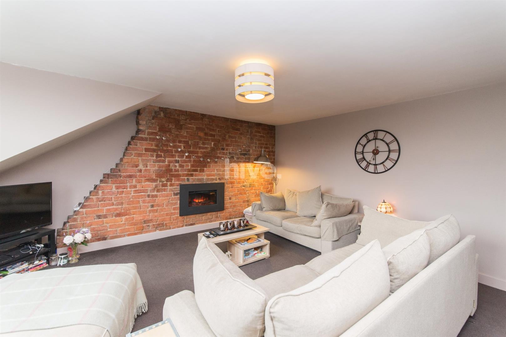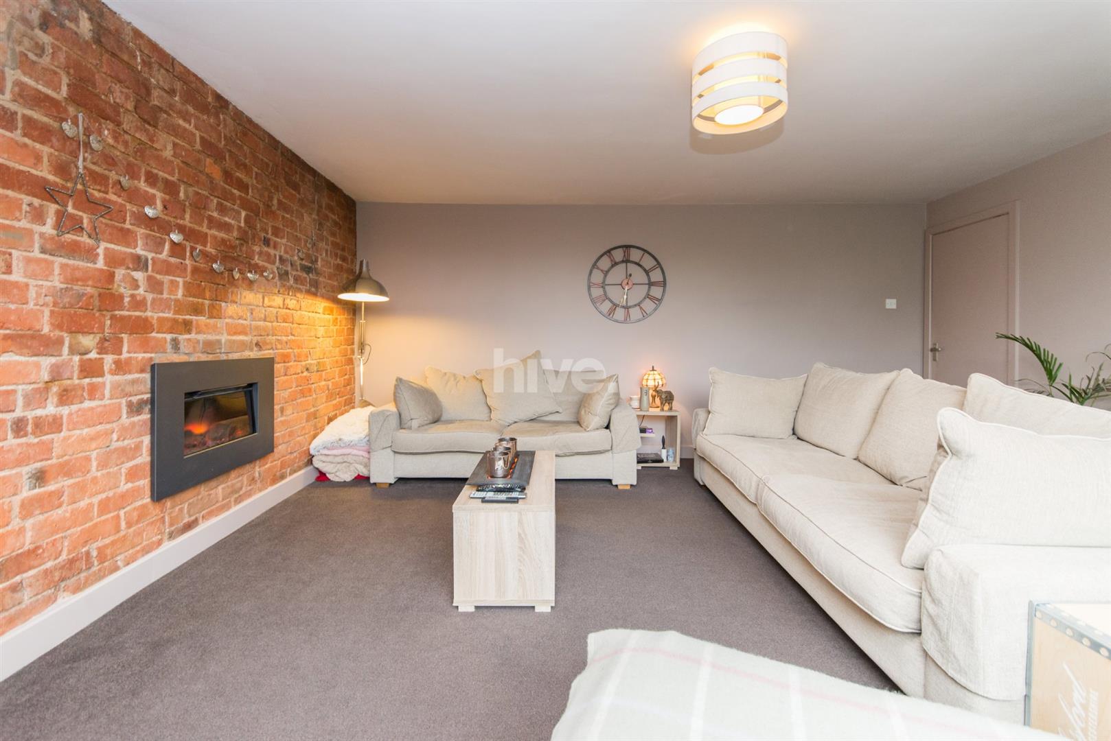 - Large living room with feature fire and bricked wall
