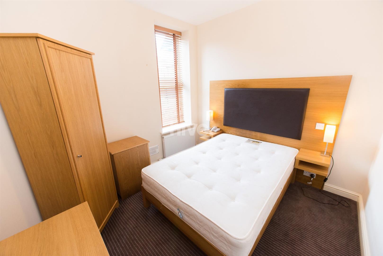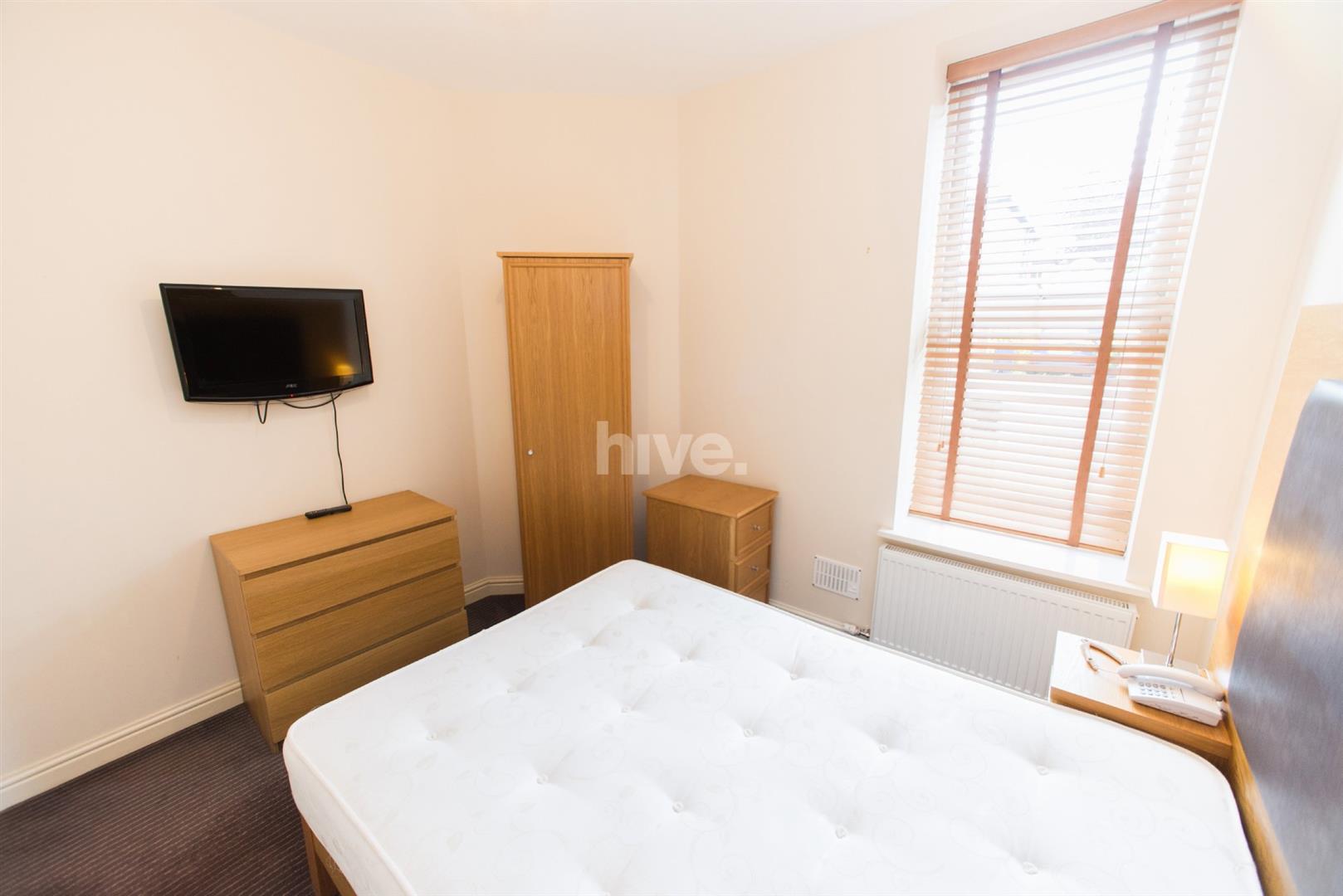 The property is located in a modern block of professional apartments. Ideal for professionals or mature students, it features a large double bedroom with headboard, double bed, wardrobe, wall mounted LCD TV and real wood blind with carpet. The hallway has laminate flooring leading through to the spacious open plan kitchen and living room.