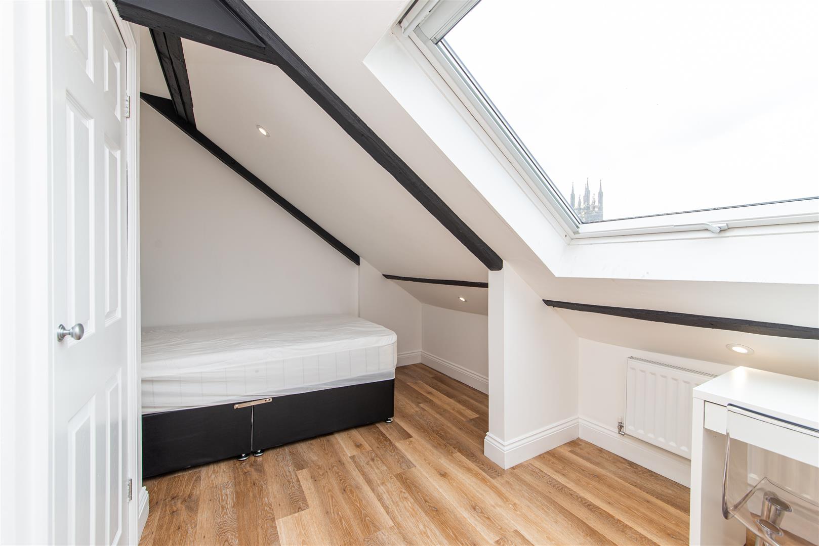 Available August 2026 | £165 per person per week | Hive Estates welcomes to the market this stunning 2 bedroom top floor apartment in the city centre. With a spacious open-plan living area, there is a contemporary kitchen with integrated appliances and lounge space. There are characterful exposed beams and Velux windows which fill the space with natural light. The 2 double bedrooms are fully furnished to a high standard and there is a modern shower room. The property also benefits from gas central heating, double glazing and a secure intercom entry system.