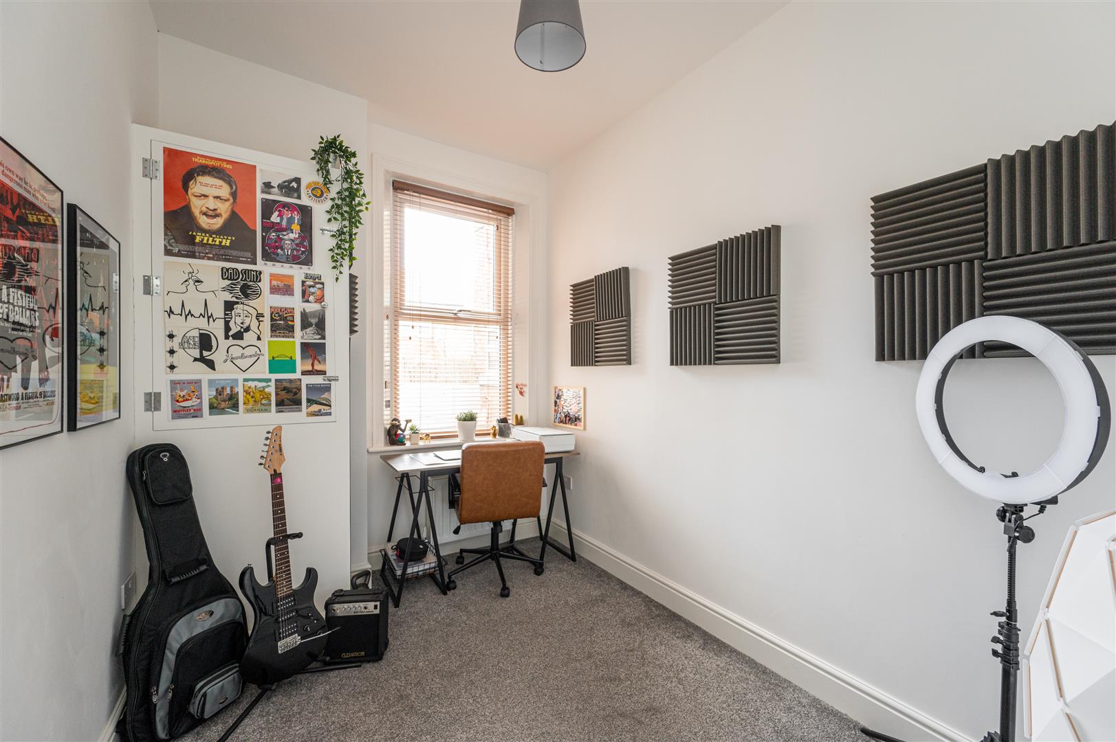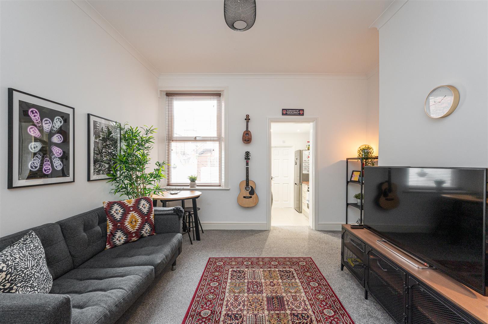 Ideally located on Simonside Terrace in Heaton, the property is close to local transport links, shops and amenities nearby. Upon entering the property you are welcomed into a bright and airy entrance hallway. There is a large main bedroom to the front, with bay window, period coving and carpet throughout. There is a second double bedroom which is currently used as a study. The living room occupies the central part of the flat, with fresh neutral décor, carpet, and an archway leading to the kitchen. Contemporary in style, the kitchen features integrated appliances, neutral cabinetry, a tiled splash-back and tiled flooring. A back door leads to the well-presented private rear yard which is mainly gravel with paving stones. There is a modern, beautifully tiled bathroom with shower over bath, basin and WC. Finished and decorated to a very high standard throughout, this fantastic home benefits from gas central heating and double glazing.