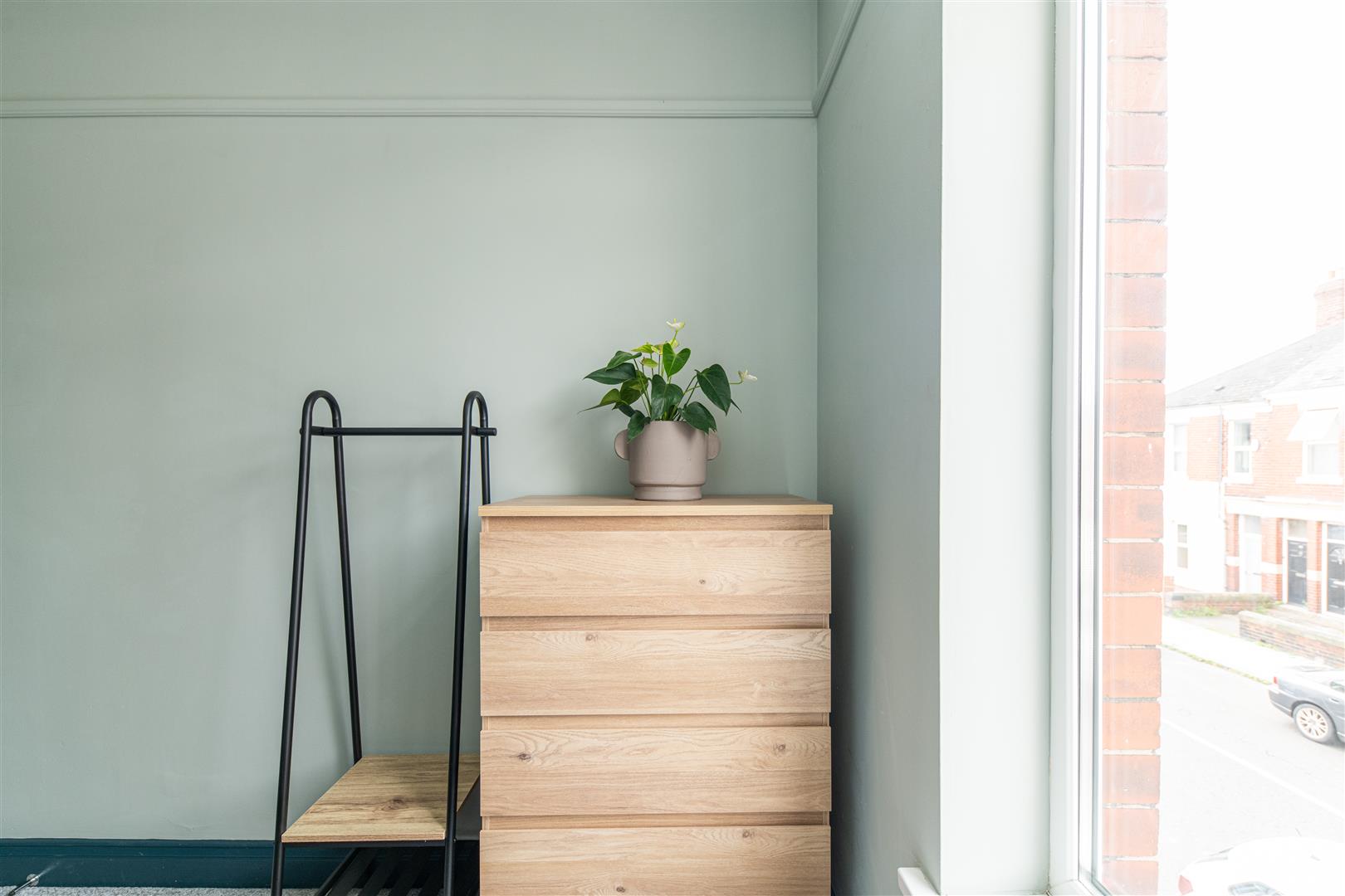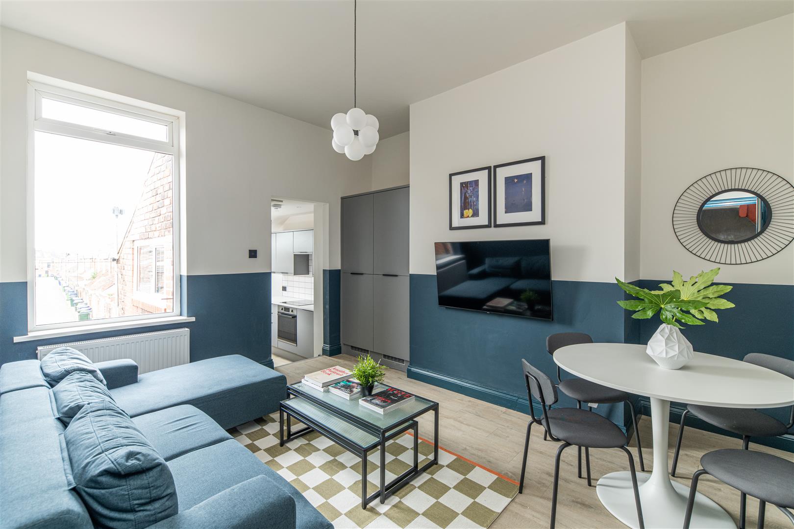 With high specification rooms and quality furniture and fixtures, there's a modern living space with wall mounted Smart LCD TV, corner sofa and dining space. The kitchen has integrated appliances including an oven, electric hob, dishwasher and washer/dryer. Each room is furnished with a double bed, mattress, wardrobe, chest of drawers, the windows come with fitted blinds and thick-pile carpet with pendant lighting. The bathroom has modern tiling, a black towel radiator, a fitted vanity sink and matching WC with large double walk in shower. Ideal for mature students or professionals wanting superb living accommodation in a popular residential area close to Heaton Park, Jesmond Dene and Newcastle City Centre.
