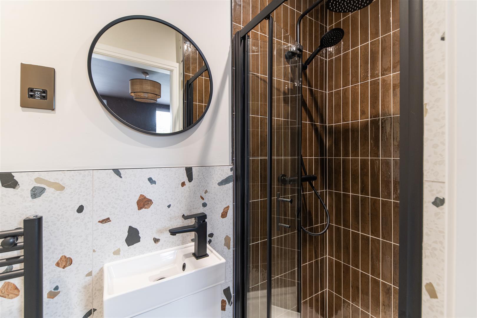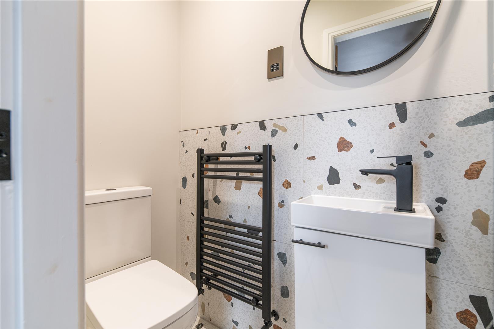 - Four ensuite bathrooms with stylish black fittings and terrazzo tiling