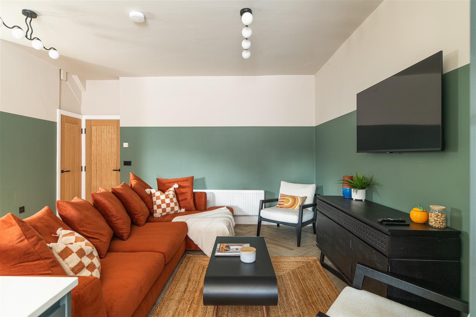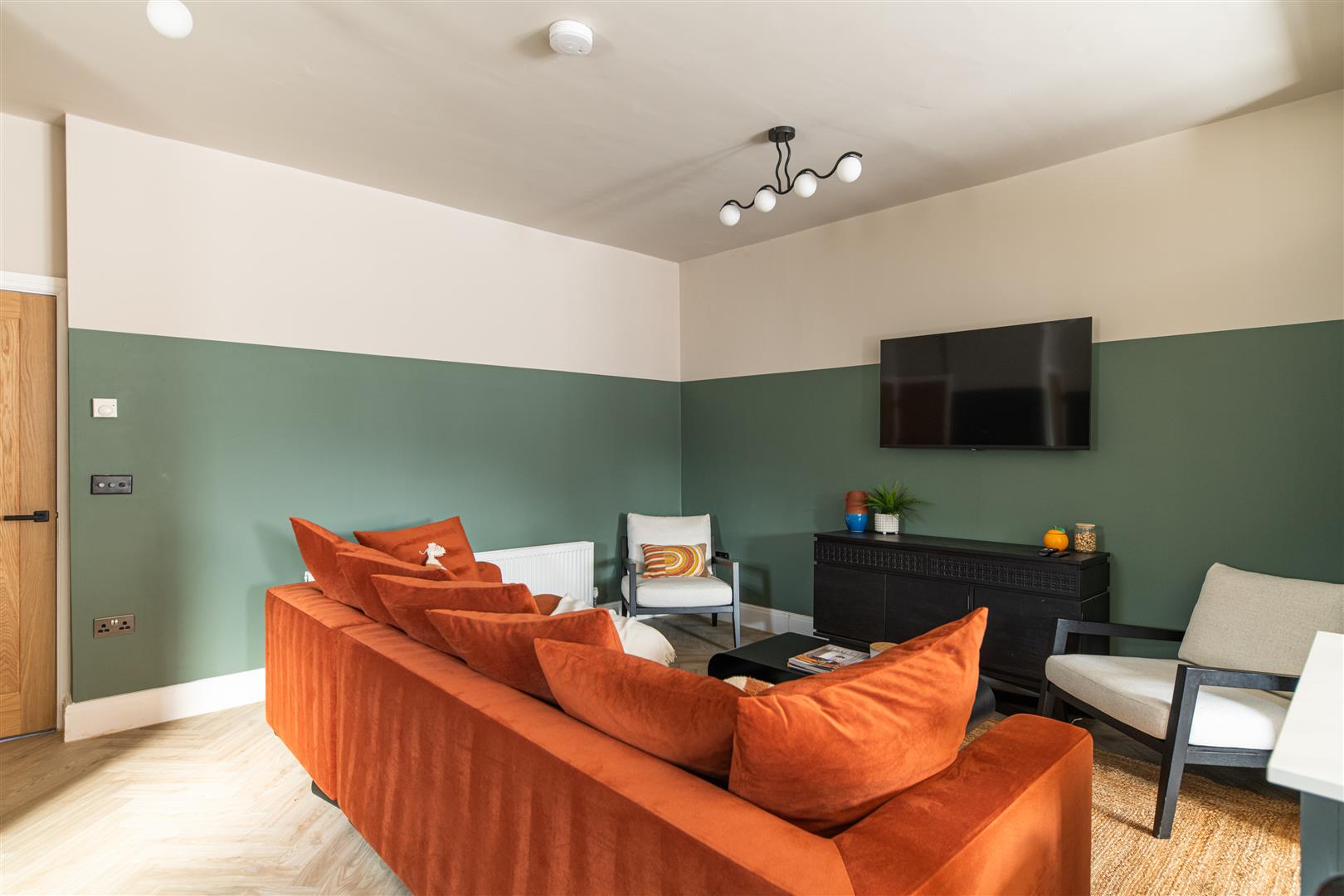 - Plush corner sofa with wall mounted 4K HD TV