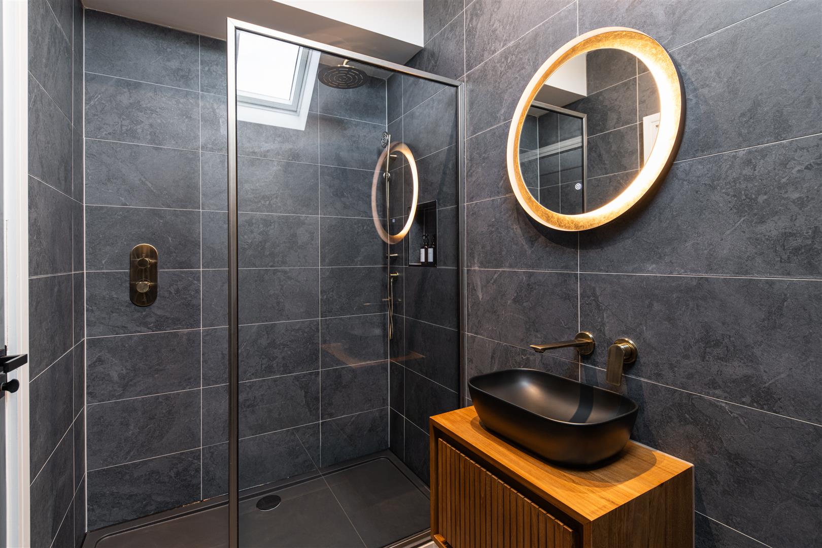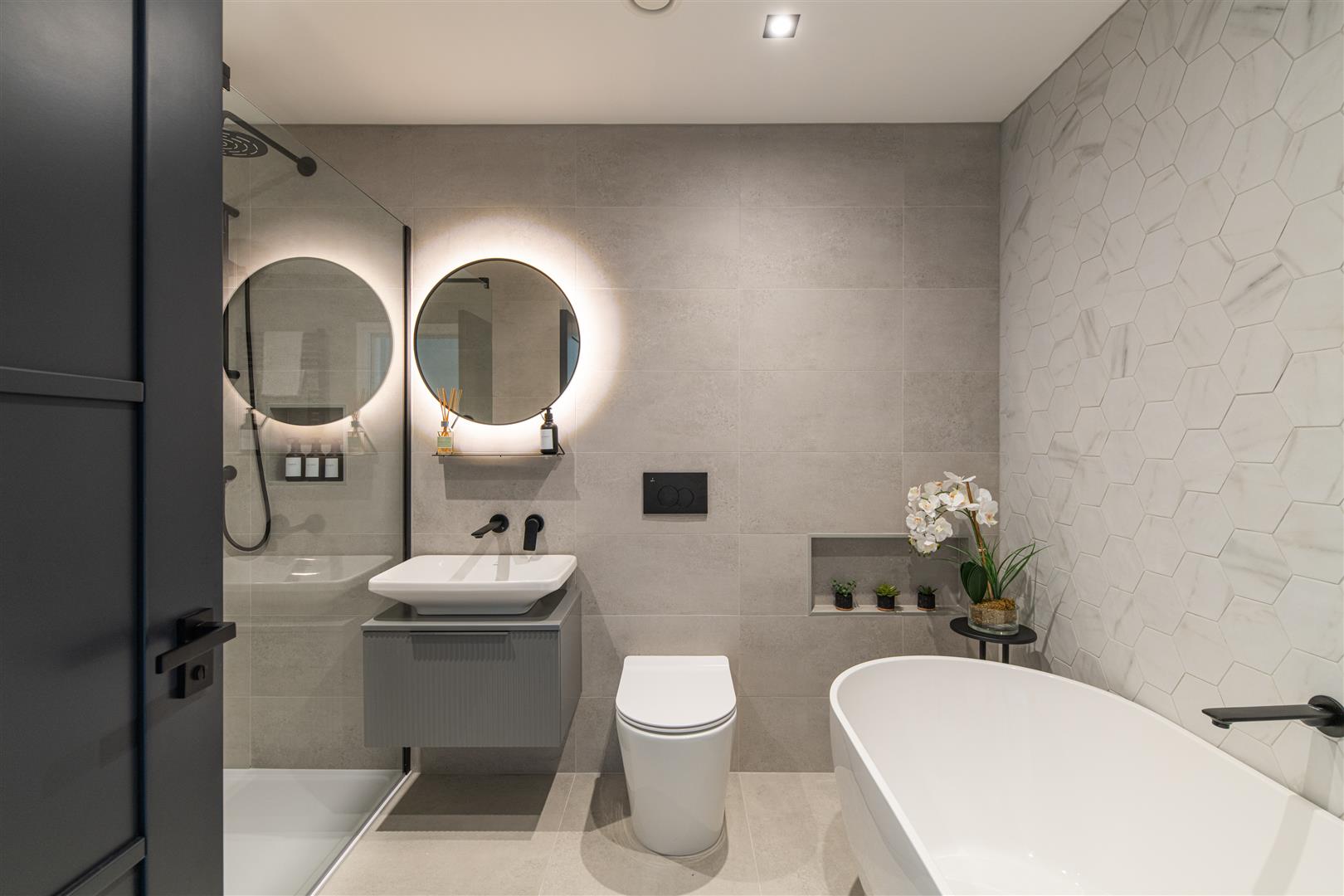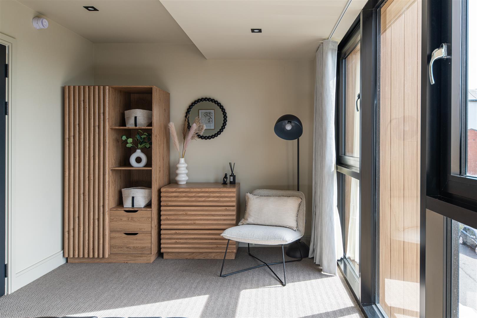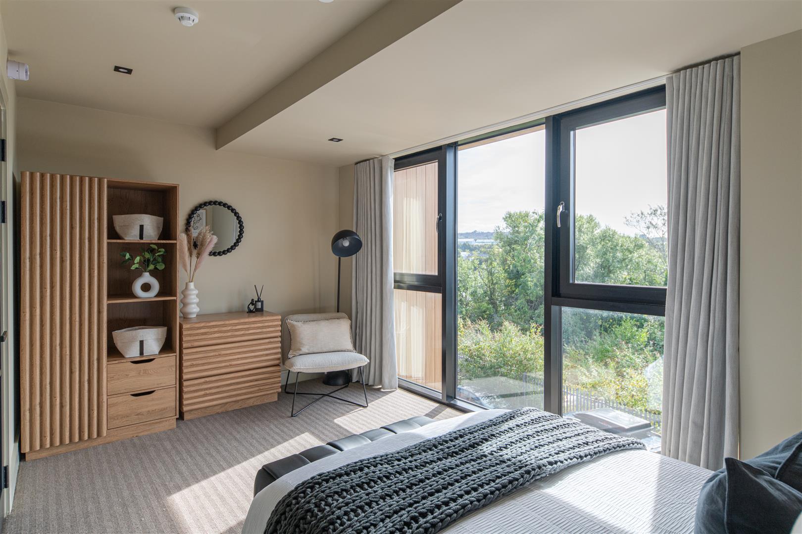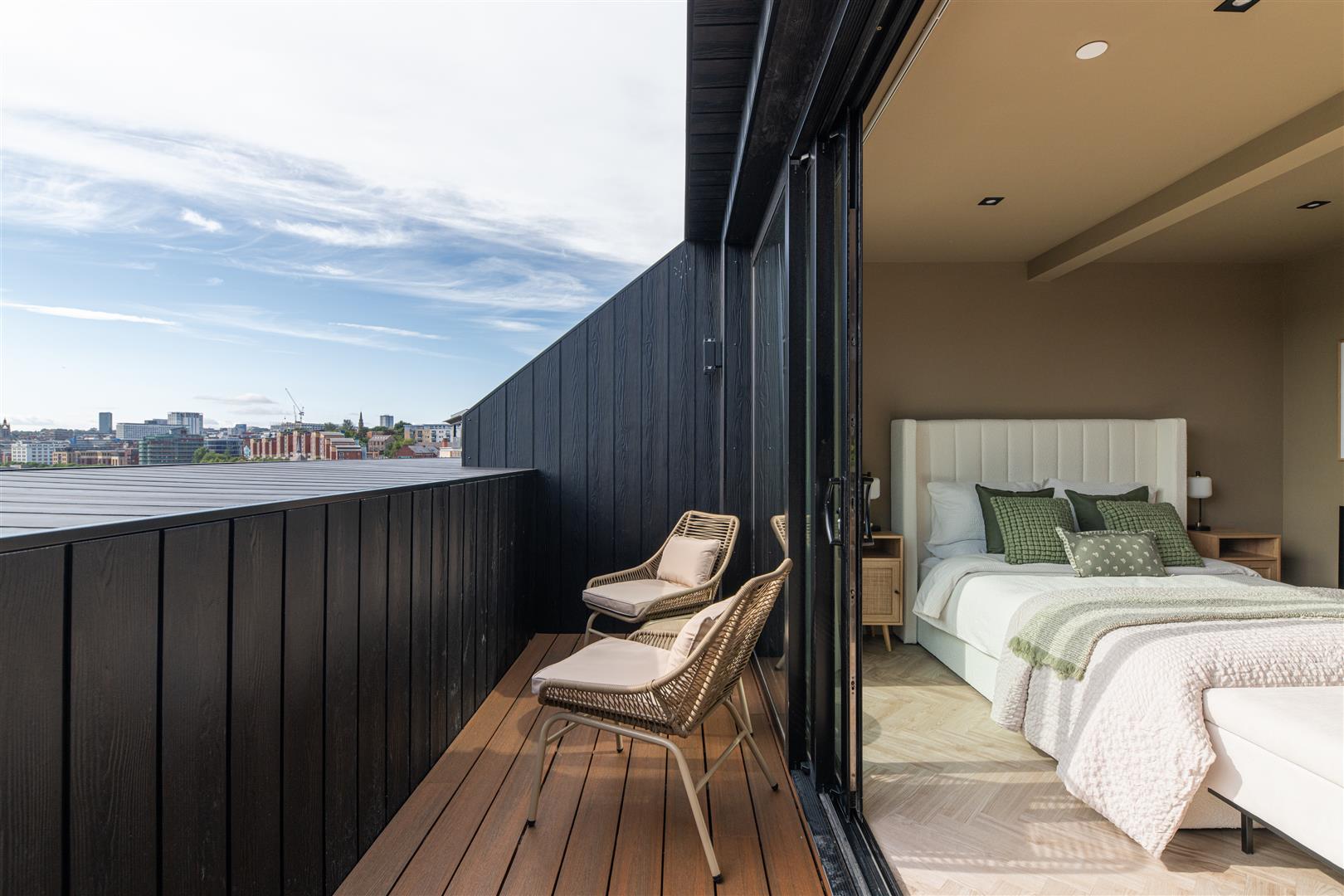 We’ve created your master suite to be a haven, hidden away from the busy city; an abundant retreat designed to help you relax and recharge. Comprising of a generous sleeping area, dedicated dressing area and a luxury en-suite. Beautifully designed with your wellness in mind, the sophisticated en-suite has brushed brass fixtures and features an oversized shower with rainfall head, premium tiling, a toilet and floating solid wood vanity with black sink. Slide the bi-folding doors and you walk out onto the most incredible private terrace on the River Tyne, with views over the bridges to be proud of.