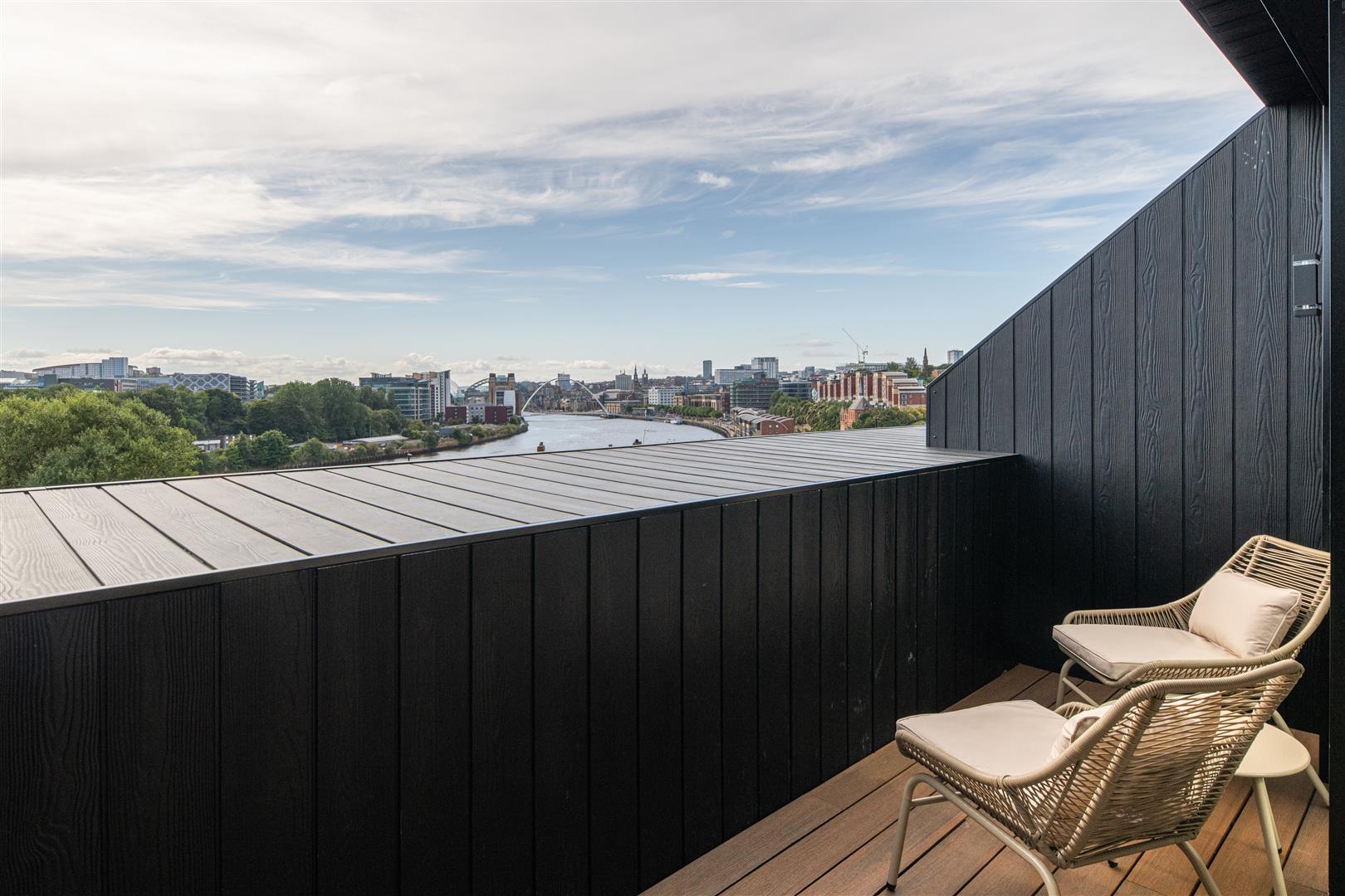 Each townhouse has ample private outdoor space. There is a stunning top floor roof terrace, and a second ground floor balcony. The Ropes overlooks the River Tyne, with unparalleled views of the bridges the penthouse floor.