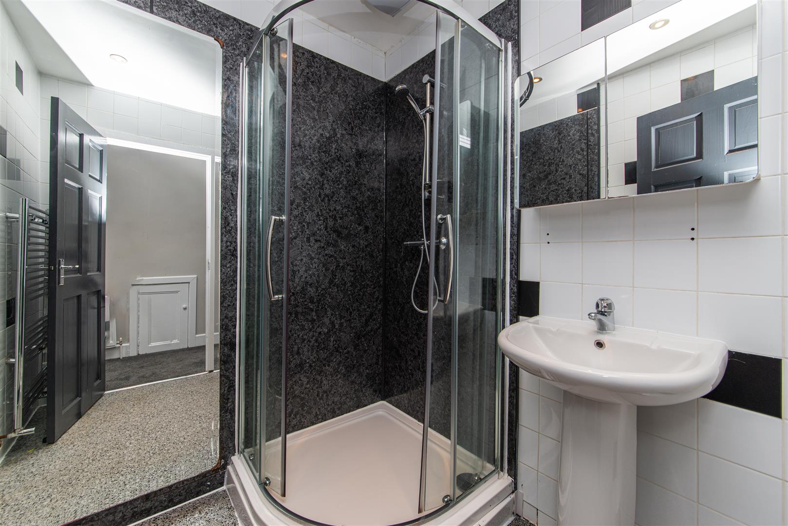 - Shower room with tiled walls