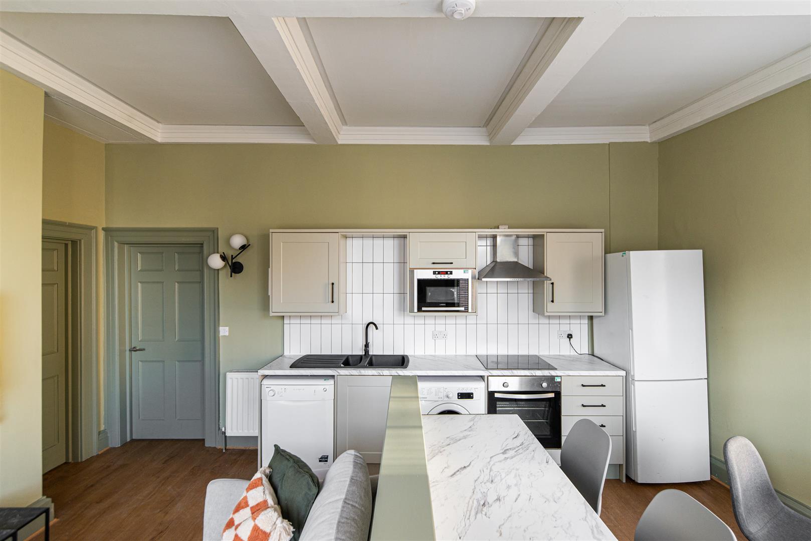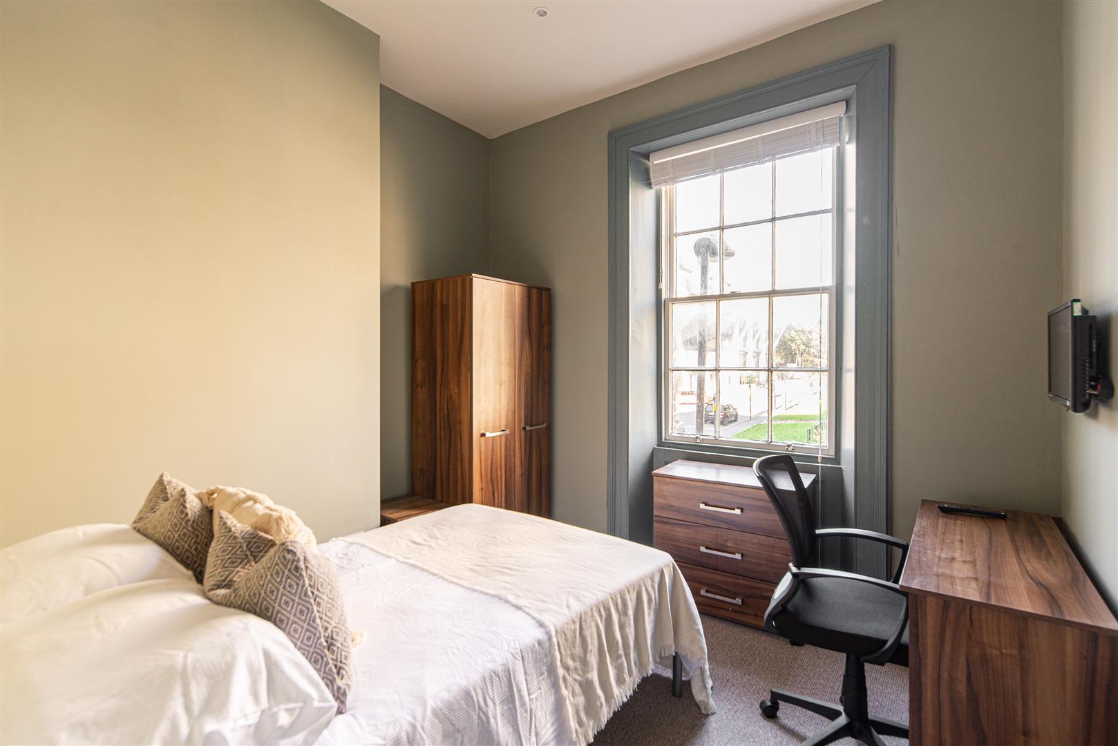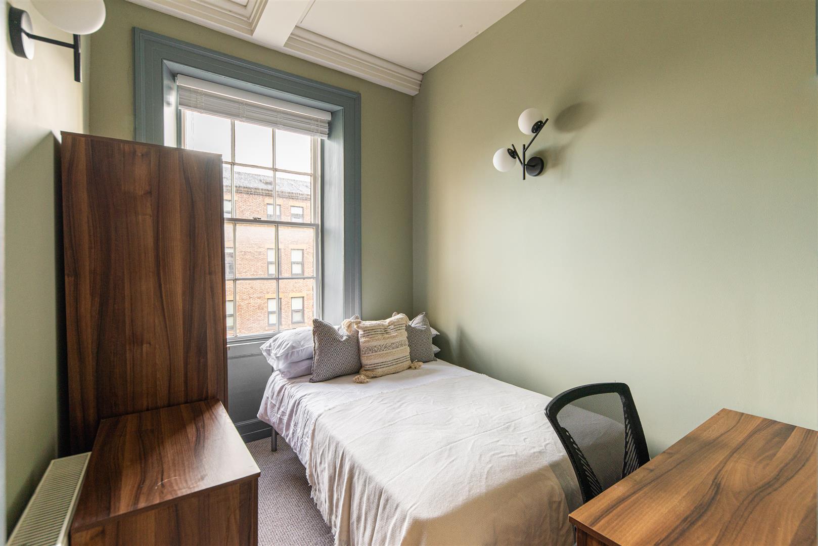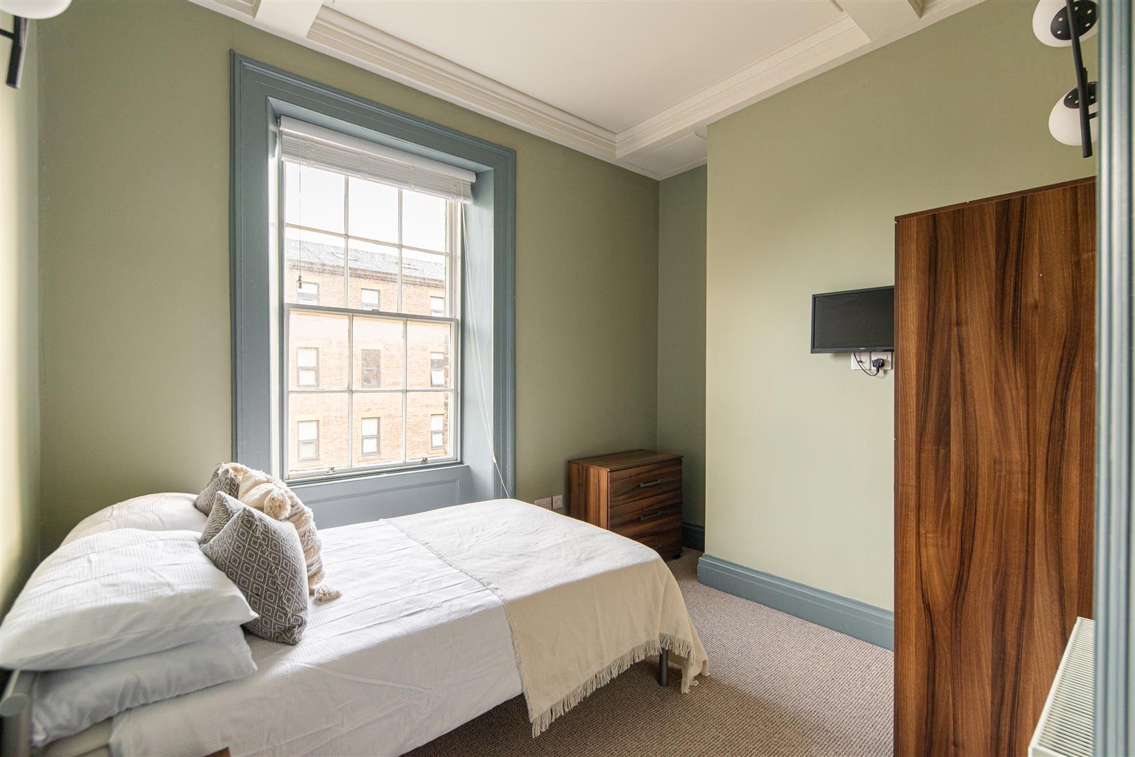 Available Now | £575 per person per month inclusive of all bills Hive Estates presents to the market this brand new modern flat on St James' Street, just a few minutes walk from Newcastle University, the RVI and St James' Park. This fully refurbished furnished property comprises of 5 double bedrooms, one full bathroom, one full shower room and beautiful open plan kitchen living room. All bedrooms are furnished with a double bed, desk, desk chair, ample storage and individual wall-mounted TVs. The shower room and bathroom are both fully tiled and the open plan kitchen is fitted with all appliances including oven, fridge freezer, built-in microwave, washer dryer and dishwasher. There is a large corner sofa, coffee table and wall-mounted TV to the living area, with a dining table and chairs in the corner of the room overlooking the stunning Georgian terrace opposite.