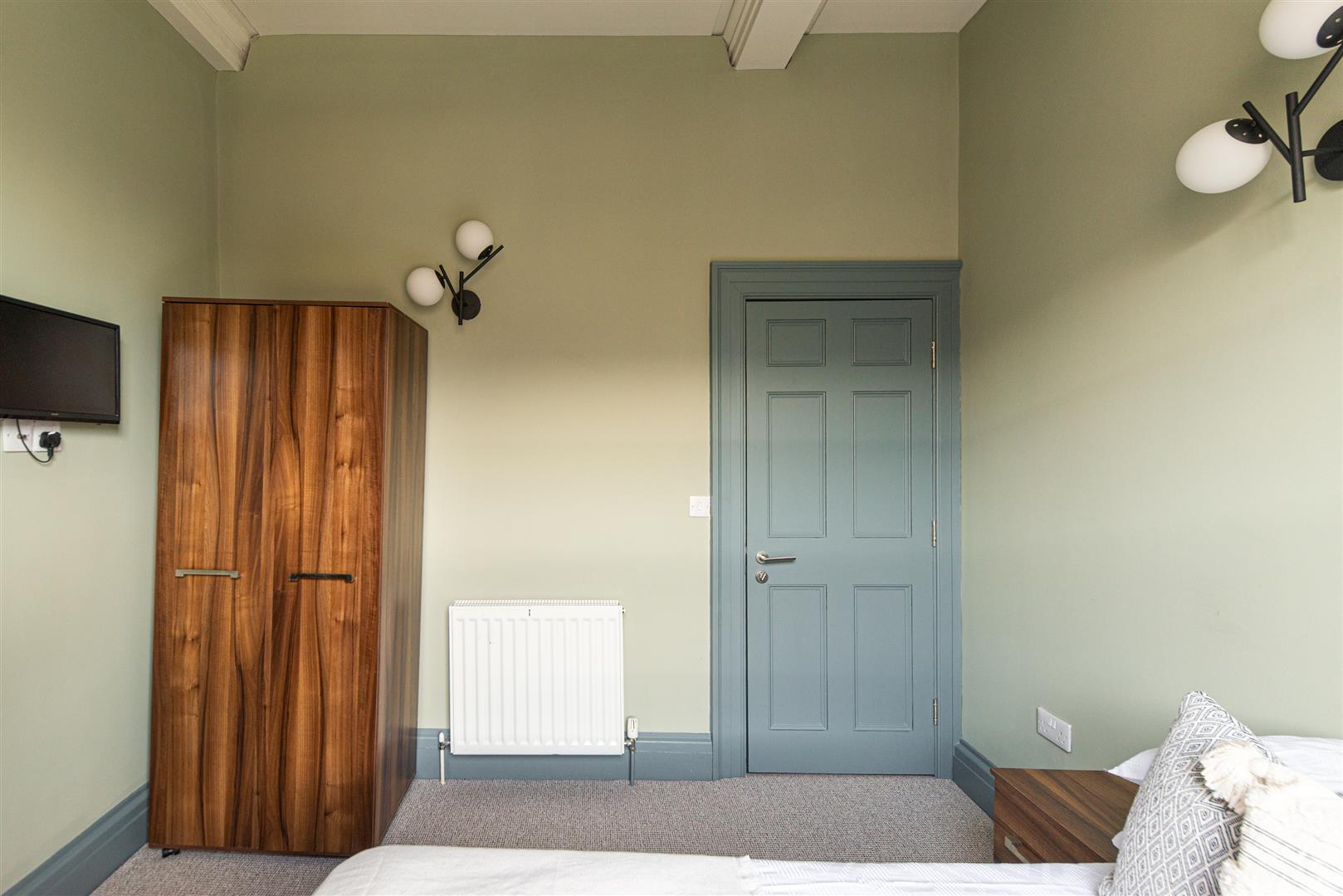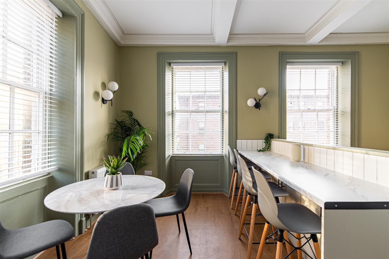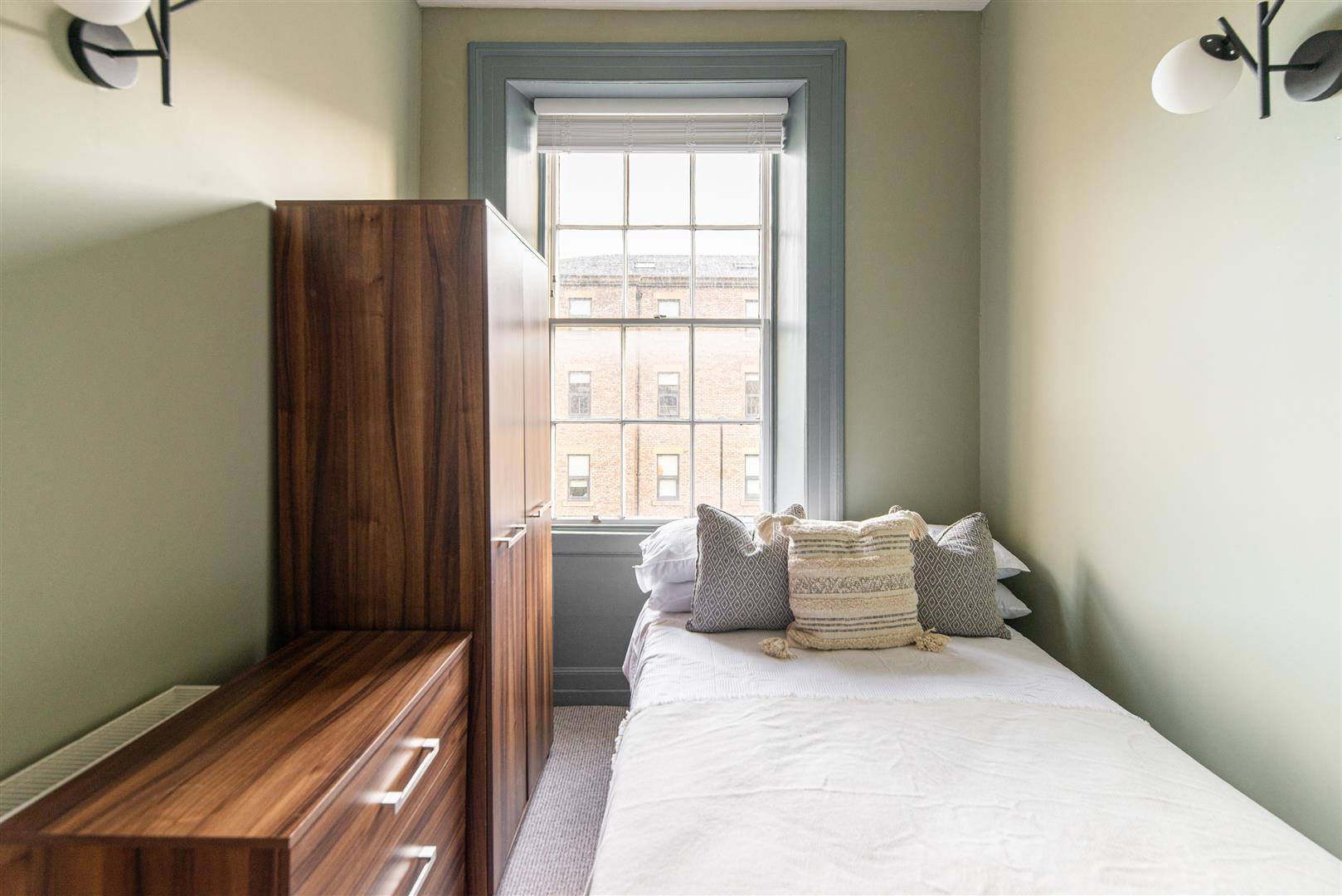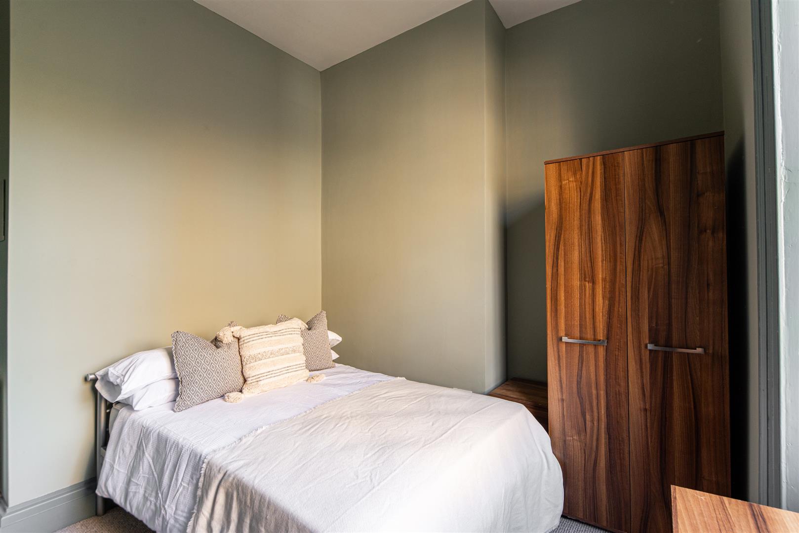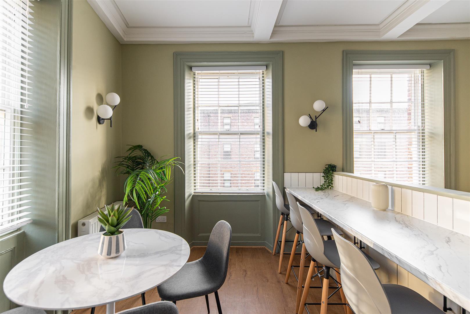 Available Now | £575 per person per month inclusive of all bills Hive Estates presents to the market this brand new modern flat on St James' Street, just a few minutes walk from Newcastle University, the RVI and St James' Park. This fully refurbished furnished property comprises of 5 double bedrooms, one full bathroom, one full shower room and beautiful open plan kitchen living room. All bedrooms are furnished with a double bed, desk, desk chair, ample storage and individual wall-mounted TVs. The shower room and bathroom are both fully tiled and the open plan kitchen is fitted with all appliances including oven, fridge freezer, built-in microwave, washer dryer and dishwasher. There is a large corner sofa, coffee table and wall-mounted TV to the living area, with a dining table and chairs in the corner of the room overlooking the stunning Georgian terrace opposite.