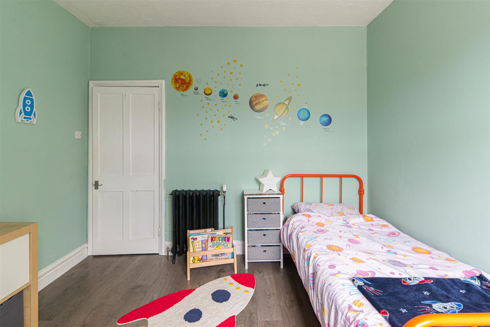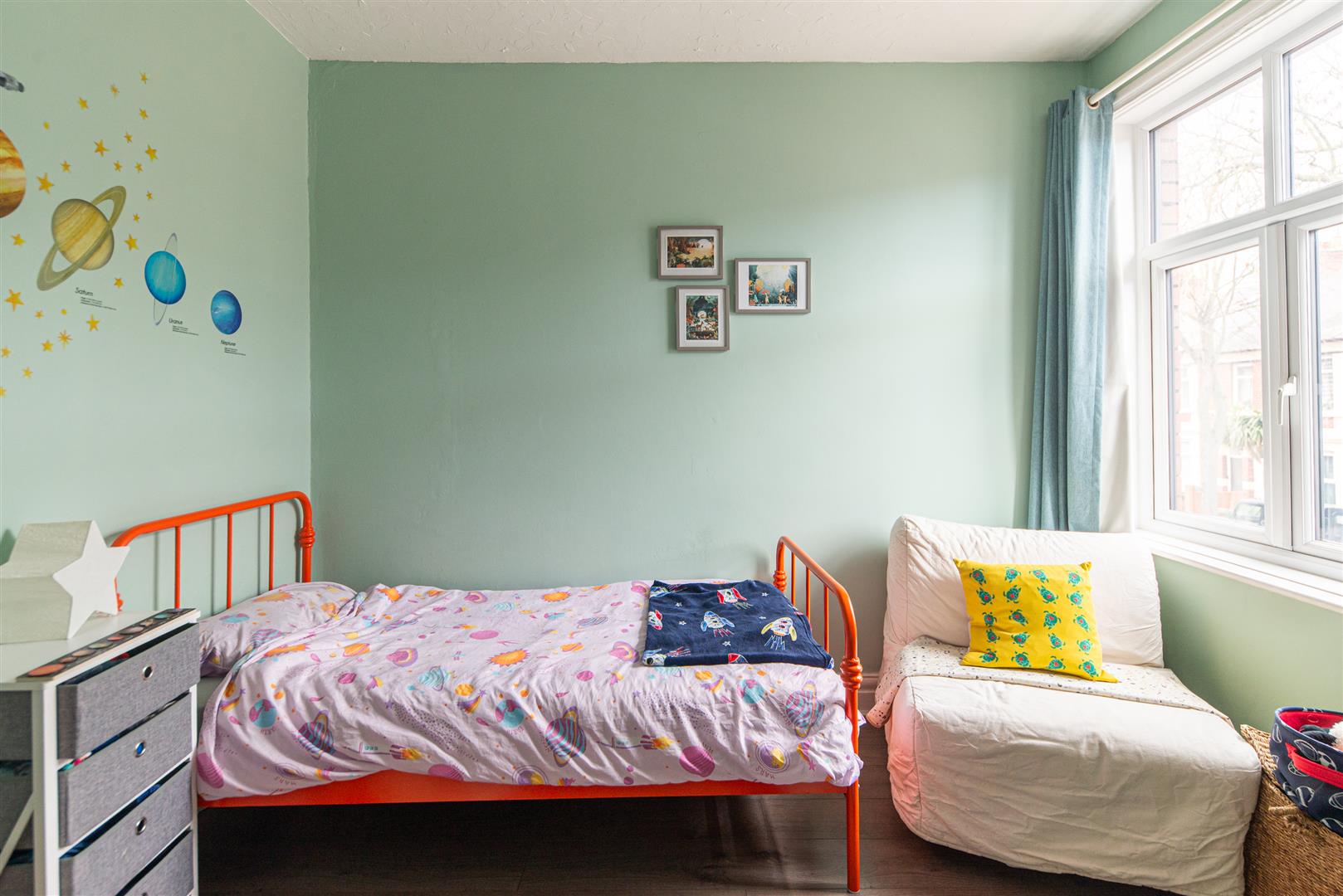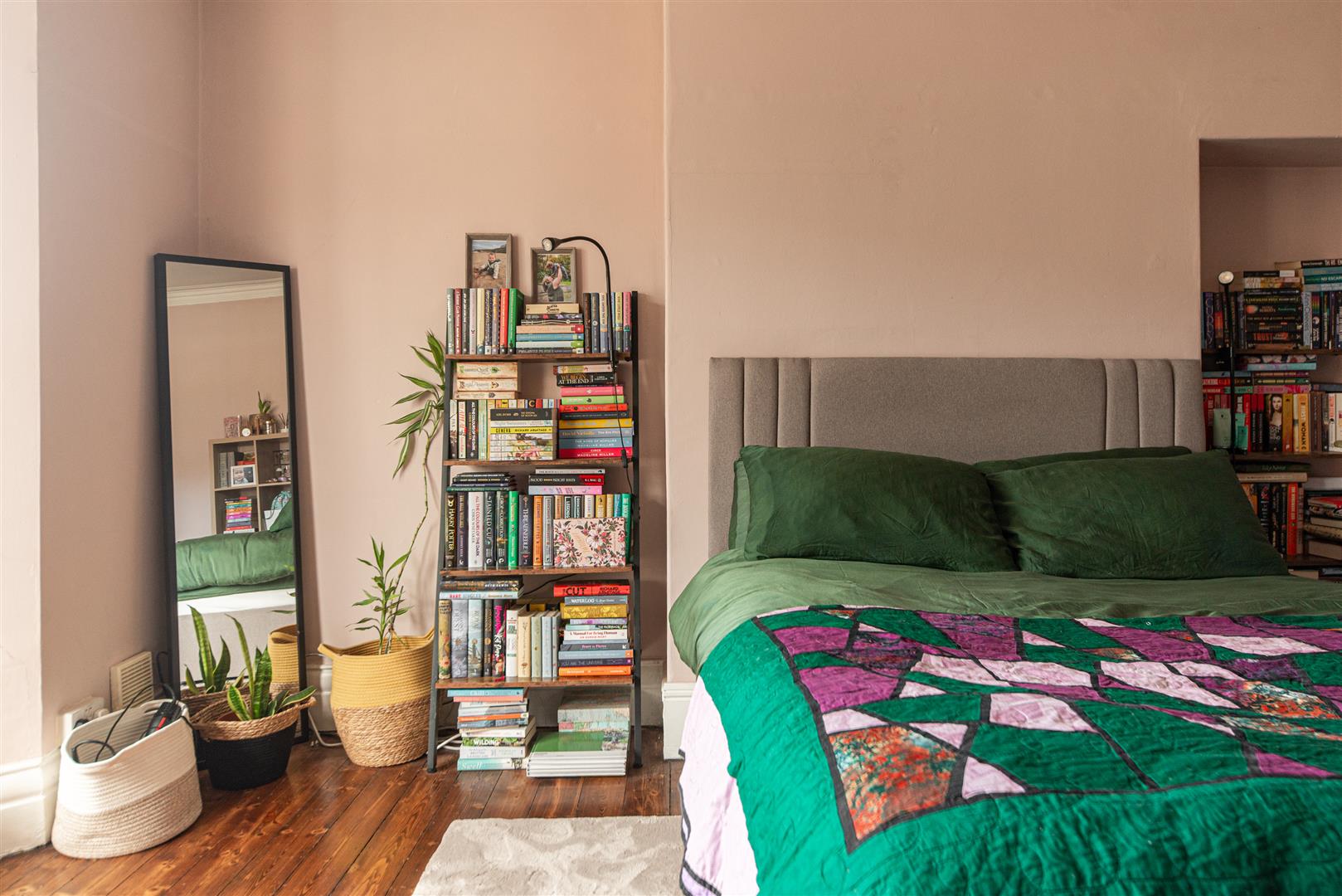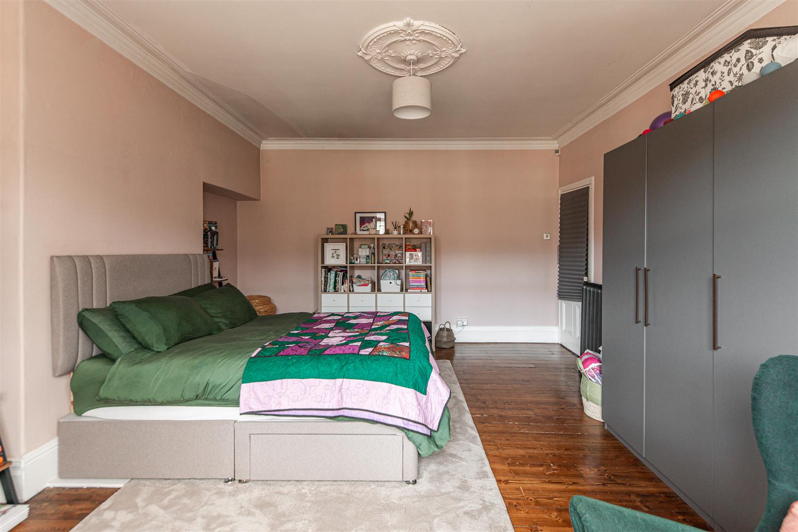 The main bedroom is a spacious and elegant retreat positioned to the front, showcasing original features including a ceiling rose and crown moulding. The two remaining bedrooms are also of generous size, filled with natural light and offering flexibility for guests, children, or working from home.