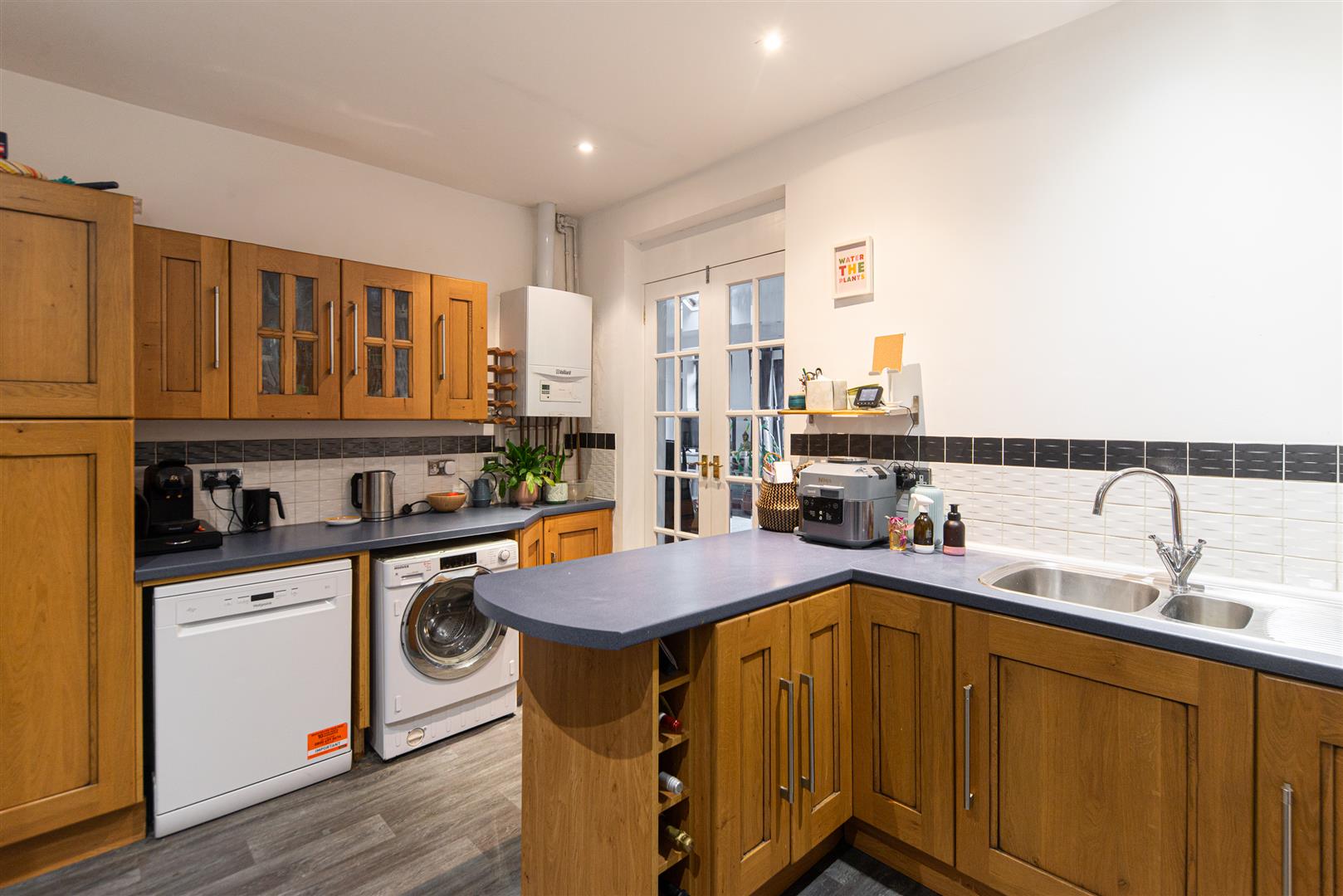 Upon reaching the first floor, you are welcomed onto a spacious landing that sets the tone for the rest of the home. To the rear sits the bright and expansive lounge/diner. A skylight and large windows fill the room with natural light, while double doors open onto an elevated decked area with steps down to the generous south-facing garden. Double doors connect the lounge/diner to the kitchen, creating a smooth and versatile flow throughout the living space.