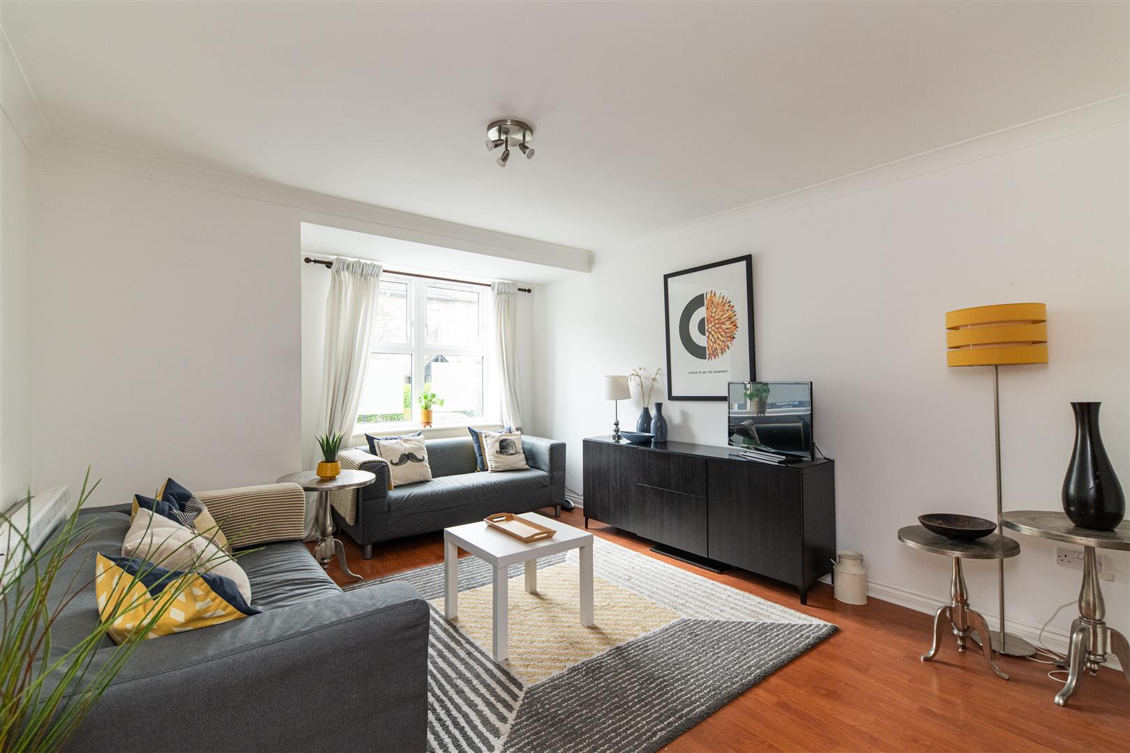 - Wood effect laminate flooring throughout
