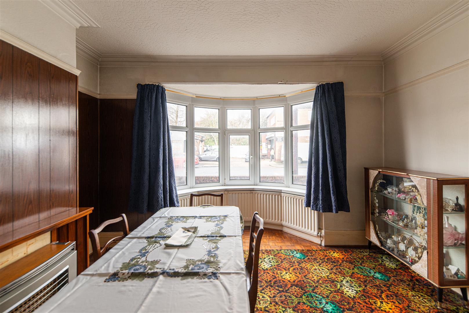 - Dining room with bay window and original floorboards
