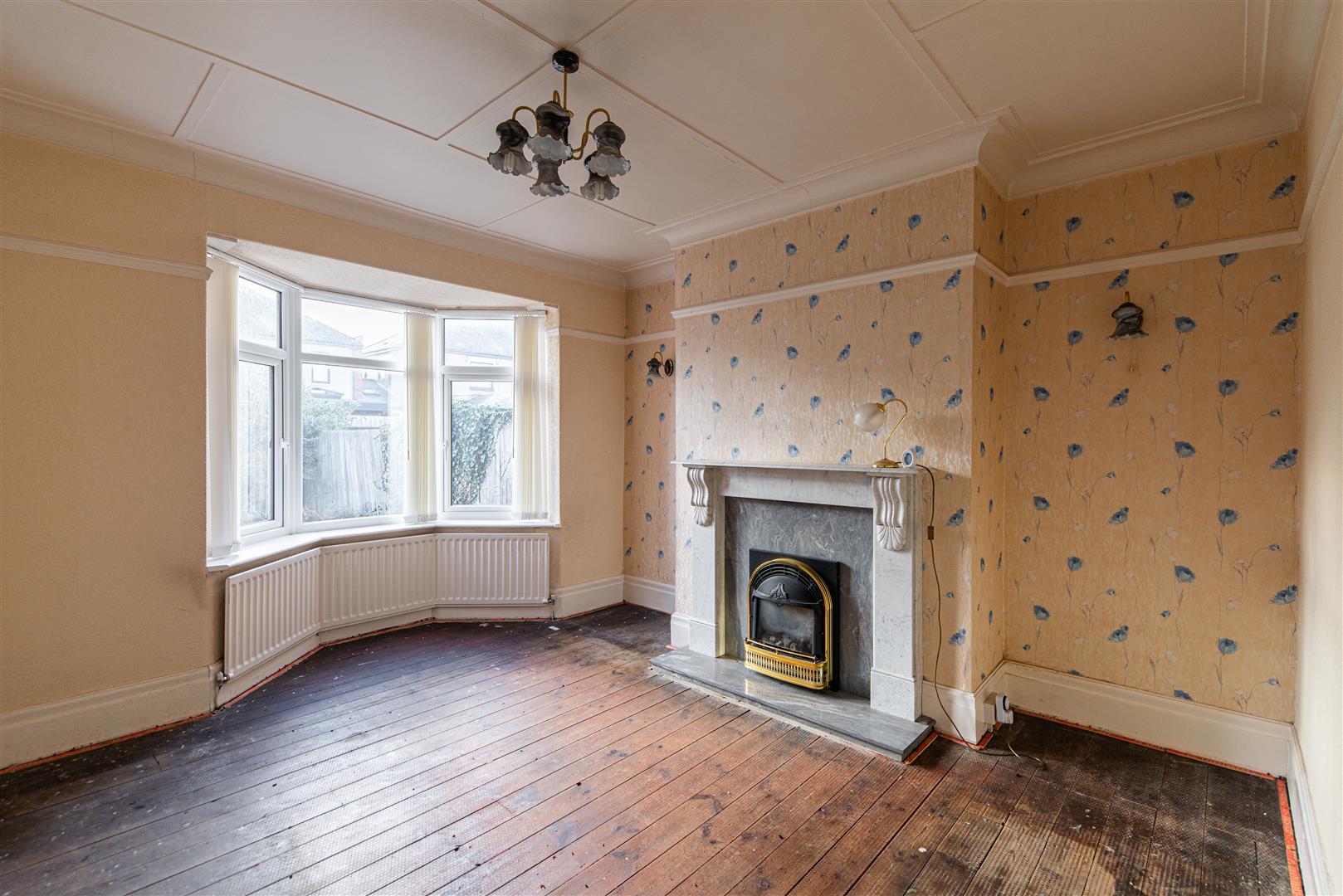 - pacious living room with bay window and feature fireplace