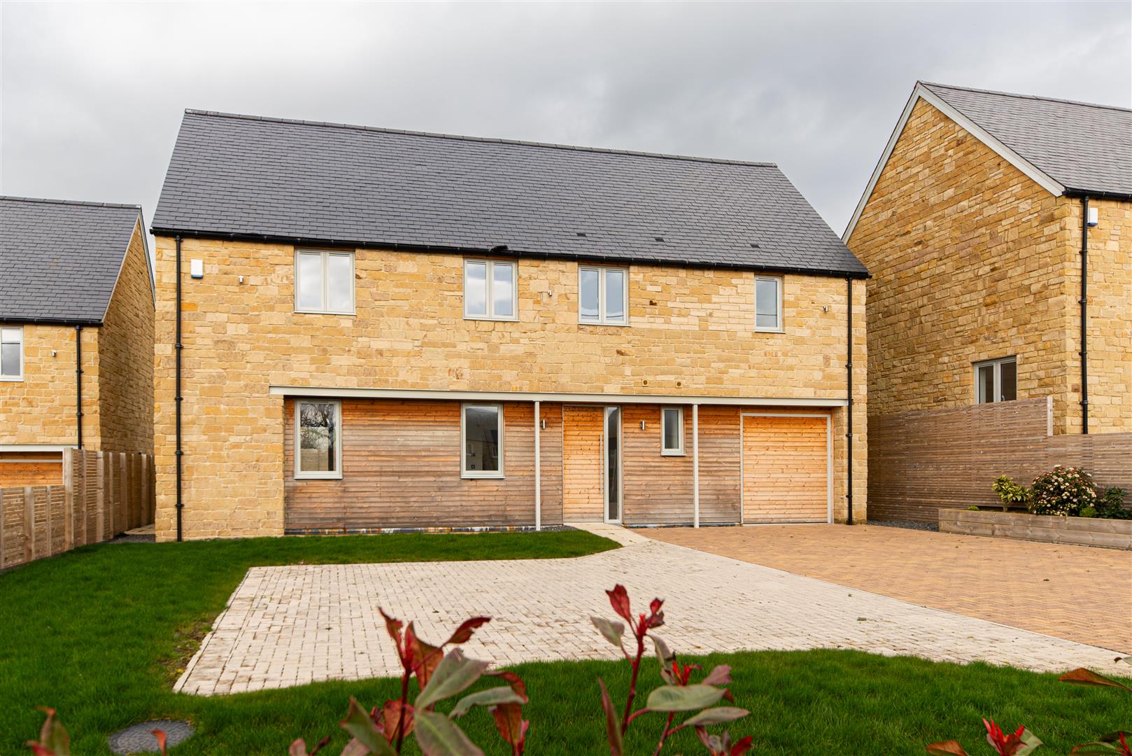 Externally, landscaped gardens, a paved patio, and a permeable block-paved driveway are framed by natural stone walling, hedgerows, and planting, creating a clean, well-defined setting. An integrated garage with cycle storage and EV charging completes the home.