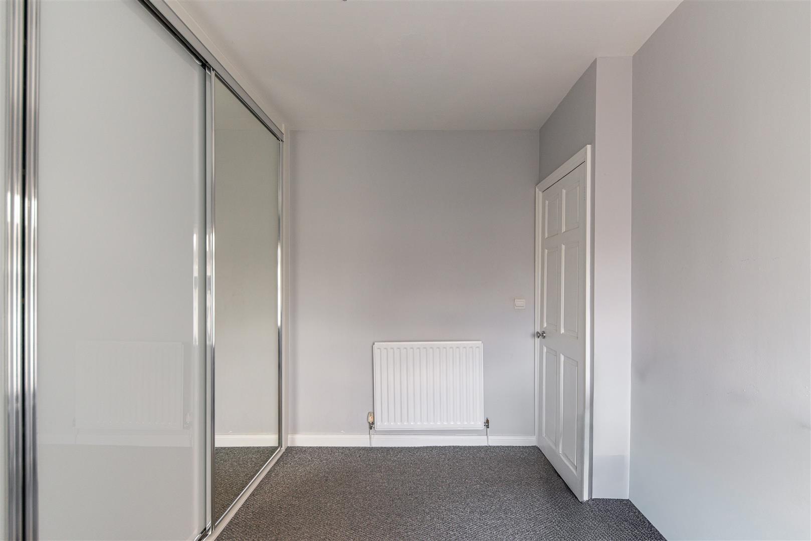 Upstairs, the principal bedroom is generously sized and features large windows that bring in plenty of light, along with stylish light grey decor, grey carpets and built in storage cupboards. The second bedroom is also well proportioned, with grey decor, grey carpets and built in sliding wardrobes, making it ideal for use as a guest bedroom, dressing room or home office. The family bathroom is finished in a contemporary style with grey wall tiles and grey wood-effect flooring, and includes a bath with an overhead shower, wash basin and WC.