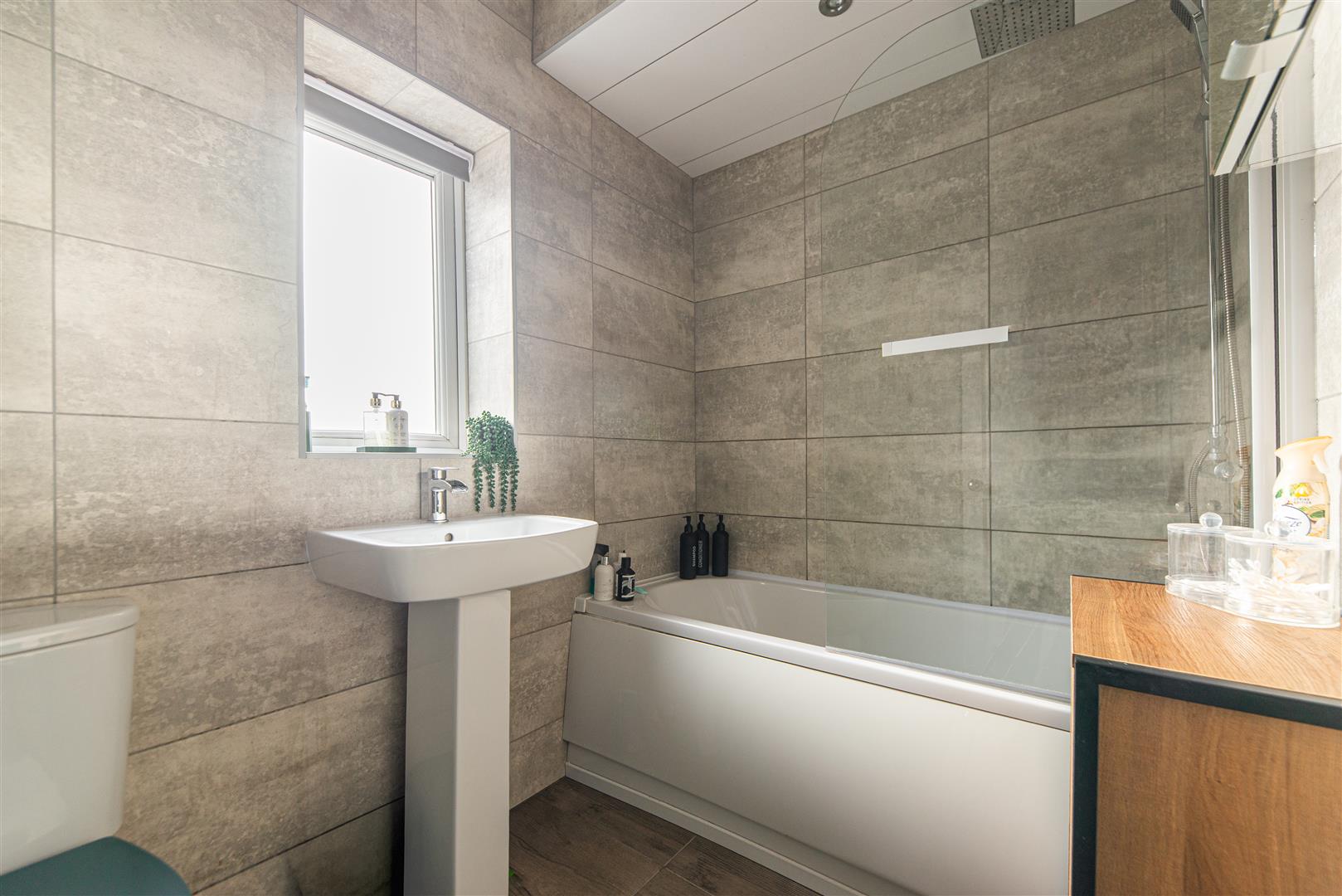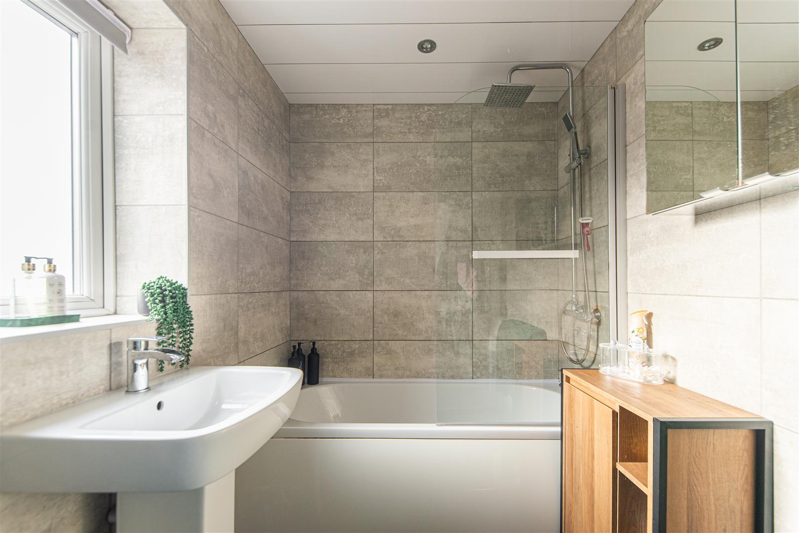- Stylish family bathroom with shower over bath